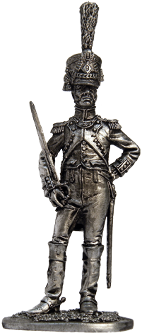 Мундир офицера покроем и цветом соответствовал униформе нижних чинов, отличаясь лишь лучшим качеством материалов. Мундир традиционного «французского покроя» шился из тёмно-синего сукна. Воротник и обшлага красные с белой выпушкой. Тёмно-синие клапаны обшлагов и вертикальные карманные клапаны на фалдах имели красную выпушку. Белые лацканы на груди и белые отвороты фалд также имели красную окантовку. В комплект парадной униформы входили белый жилет, перчатки и белые панталоны. Старшие офицеры носили ботфорты со шпорами. Основным отличием звания являлись эполеты. Бахрому на обоих эполетах имели только полковник и майор, командовавший запасным батальоном. При положенном в линейной пехоте золотом металлическом приборе, поле эполет майора было серебряным, как и обшивка по верху кивера. Султан у полковника был белым, тогда как майору полагался белый с красным верхом. Офицеры линейной пехоты носили также позолоченный нагрудный знак с серебряным орлом в центре. Украшения кивера и темляк шпаги золотые.