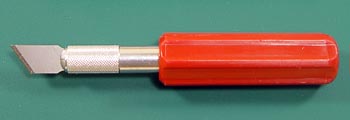 Алюминиевый нож с четырехкулачковой цангой и пластиковой рукояткой предназначен для установки больших широких лезвий, которые применяются при грубой обработке больших деталей (набор корпуса, детали из фанеры и т.д.). В комплекте идет лезвие №19. Нож имеет прозрачный защитный колпачок. Длина около 12 см. Производство фирмы Excel, США.