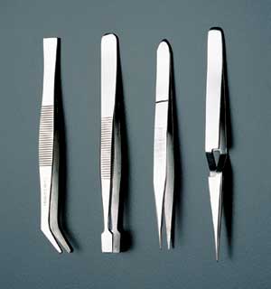 Набор содержит прямой самозажимной и обычный пинцет, пинцет с изогнутыми кончиками и пинцет с широкими плоскими кончиками. Все пинцеты выполнены из нержавеющей стали и имеют длину около 12 см. Незаменимы при тонкой работе. Набор упакован в пластиковый конверт.